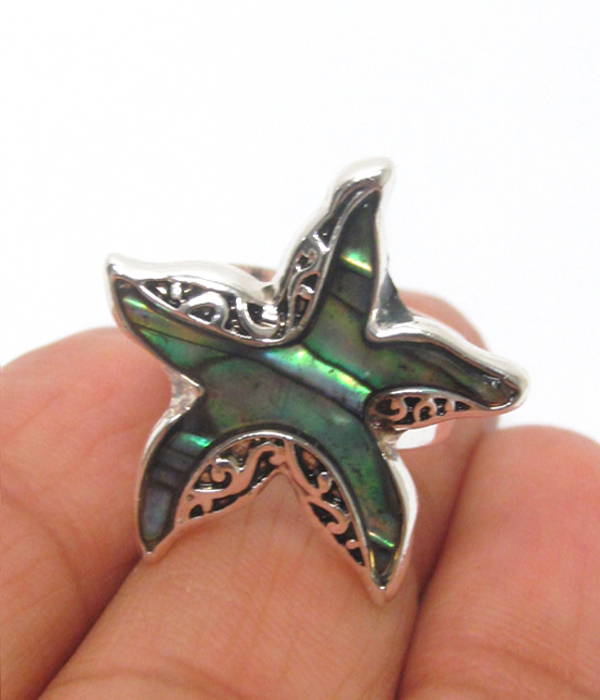 WHOLESALE MOTHER OF PEARL STARFISH ADJUSTABLE RING 419603