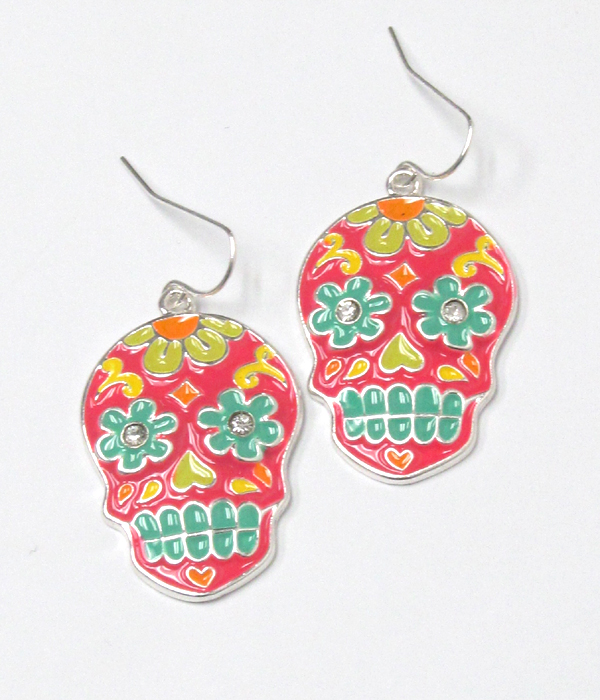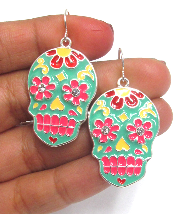 WHOLESALE EPOXY SUGAR SKULL EARRING 419642