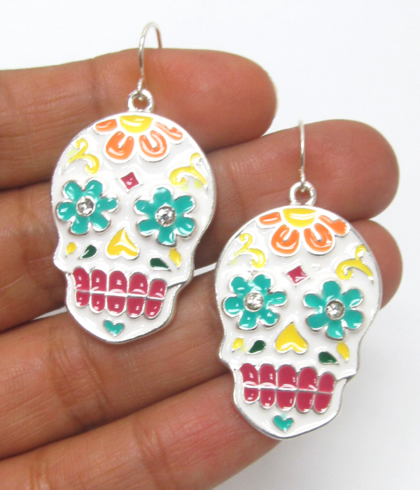 Epoxy sugar skull earring