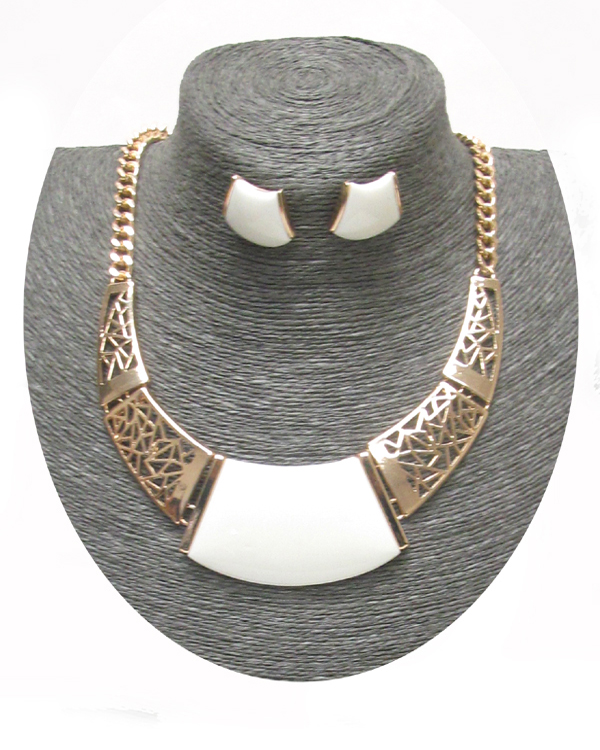 Formica stone cutout metal design bib necklace set