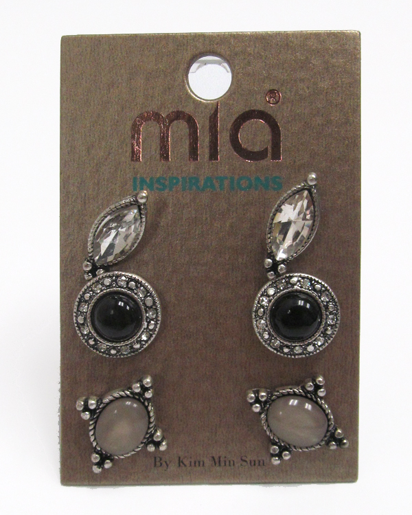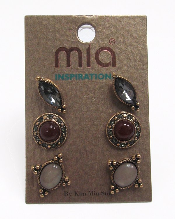 WHOLESALE MIXED GENUINE STONE THREE PAIR EARRING SET  428900