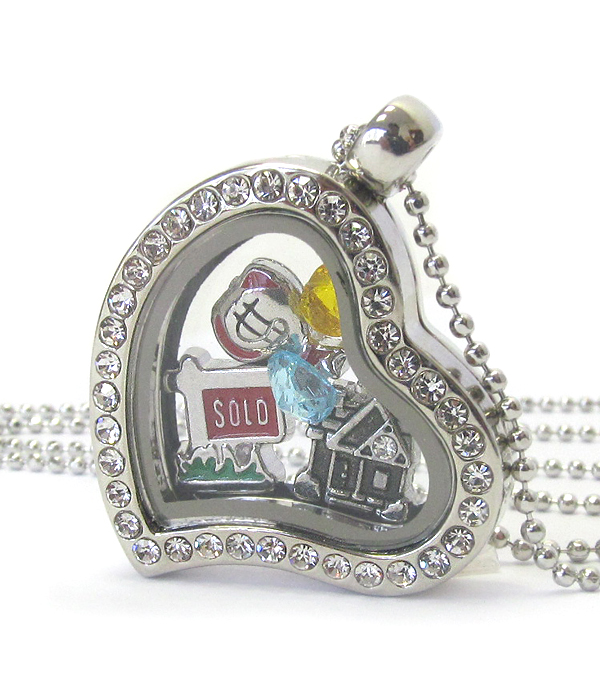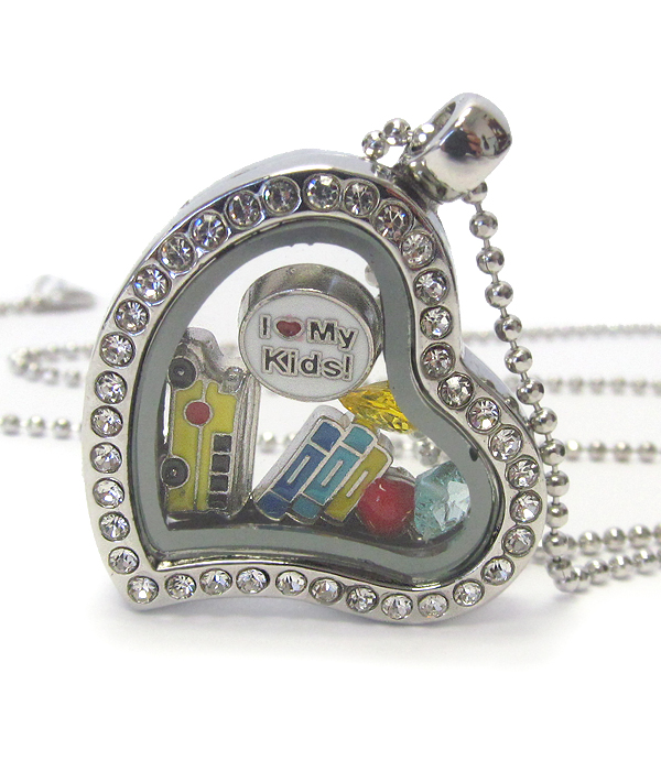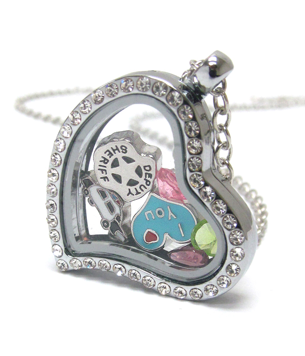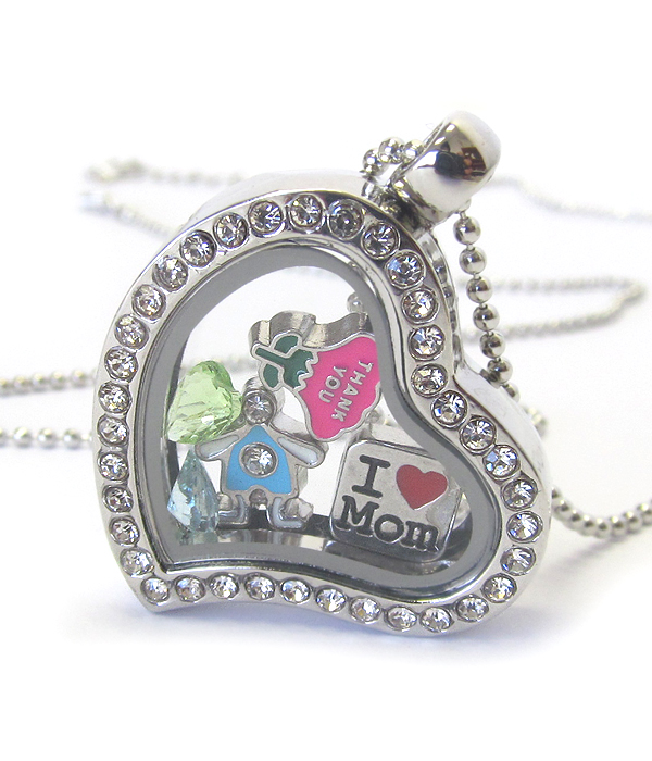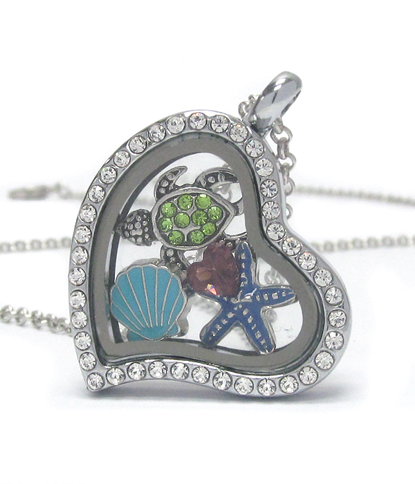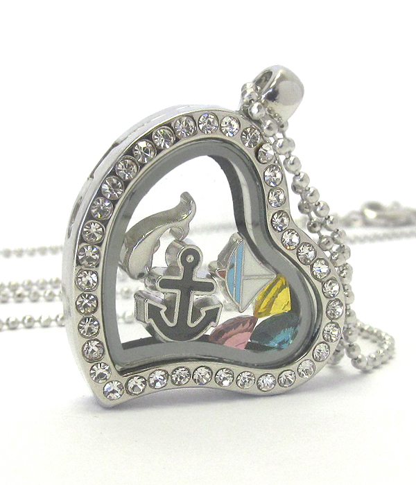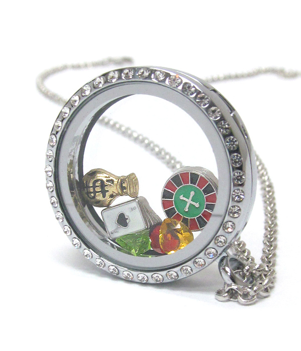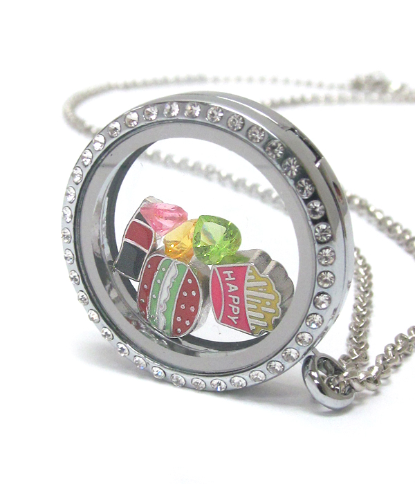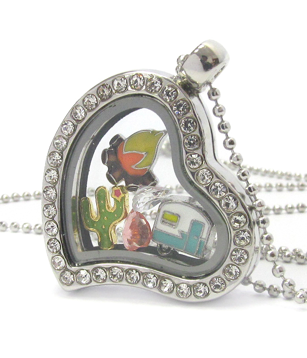 WHOLESALE ORIGAMI STYLE FLOATING CHARM ROUND LOCKET PENDANT NECKLACE - I LOVE BEACH PALM TREE 429914