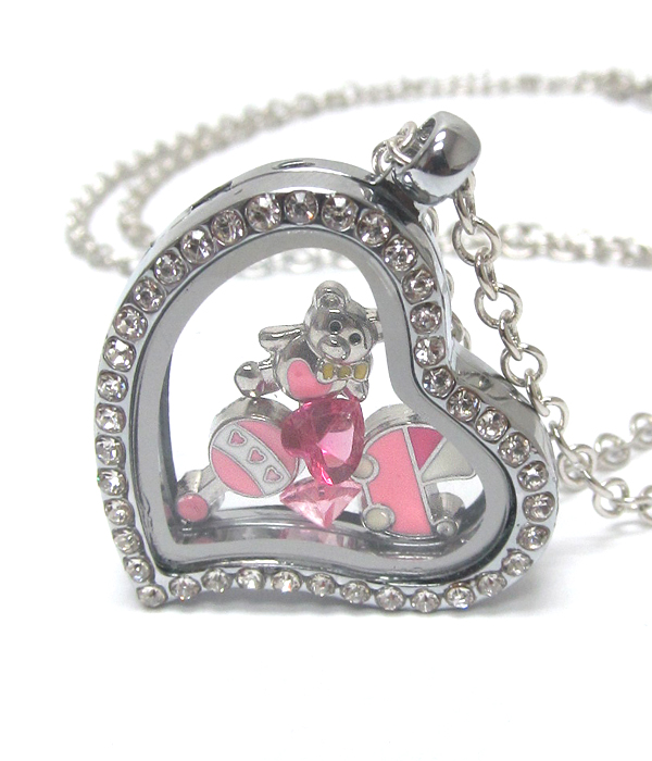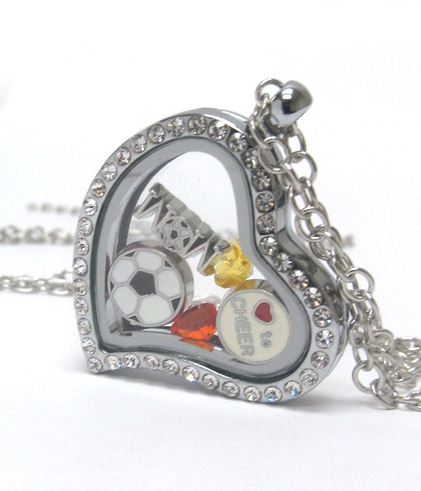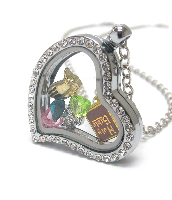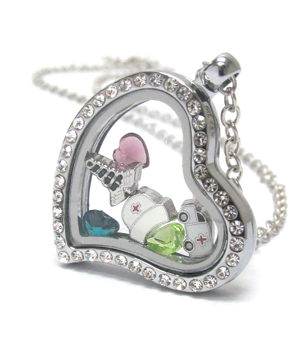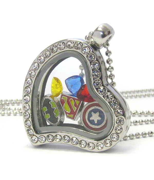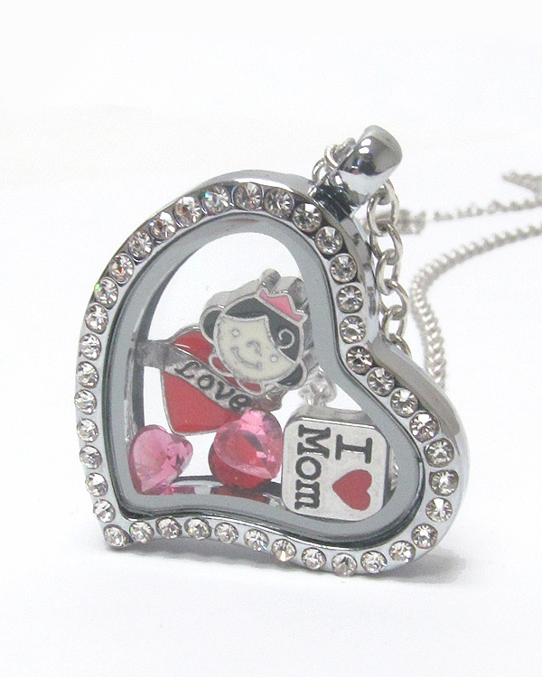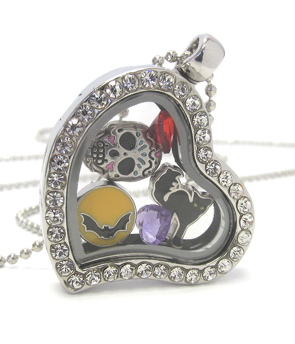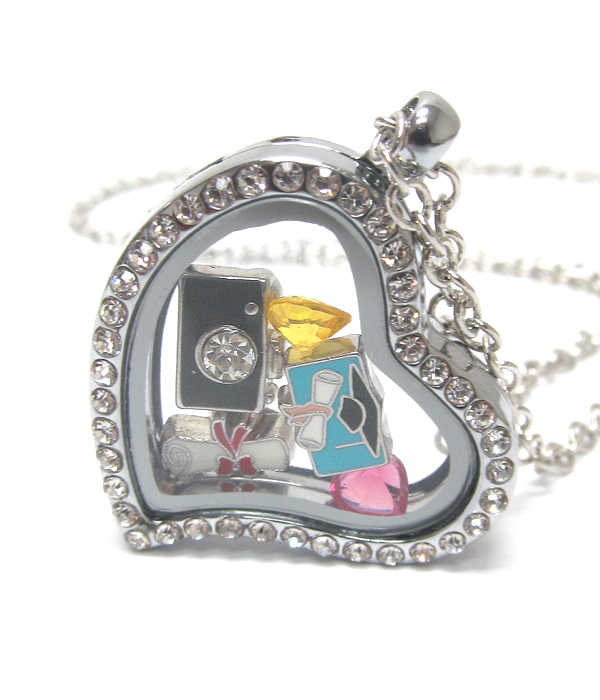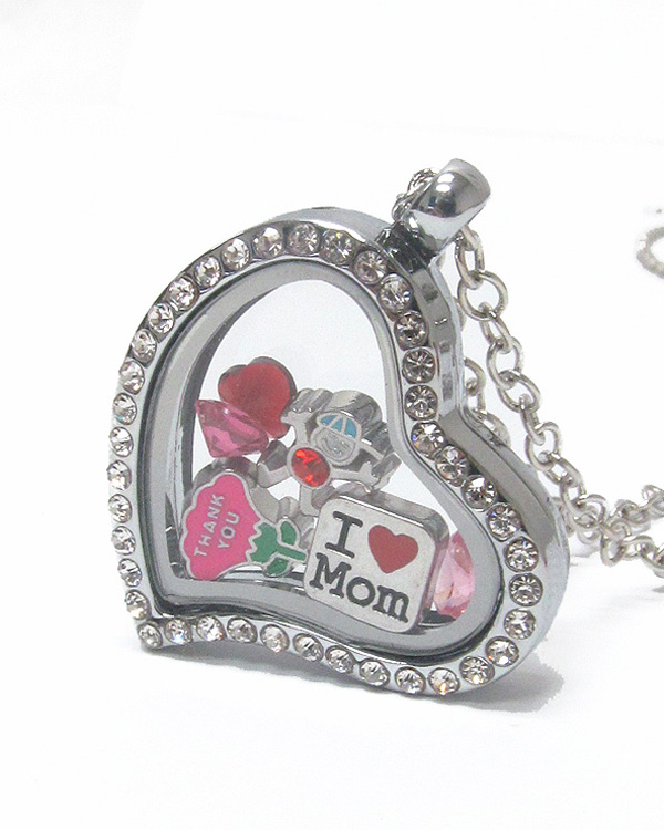 WHOLESALE ORIGAMI STYLE FLOATING CHARM ROUND LOCKET PENDANT NECKLACE - I LOVE BEACH PALM TREE 429914