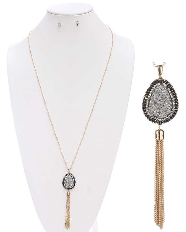 WHOLESALE DRUZY AND CRYSTAL TEARDROP AND FINE CHAIN TASSEL LONG NECKLACE SET 429991