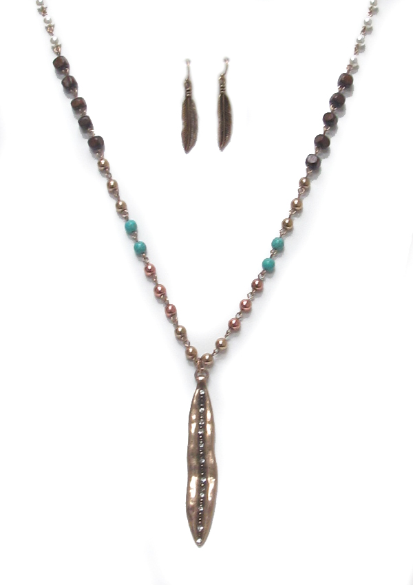 WHOLESALE MULTI BEAD METAL TEXTURED FEATHER NECKLACE SET 430360