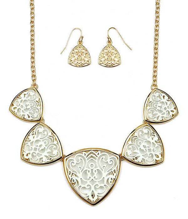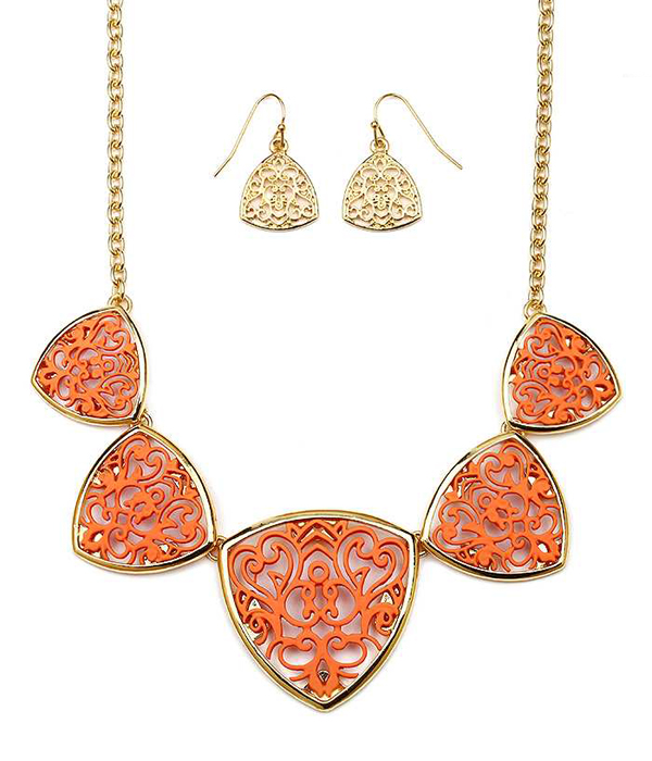 WHOLESALE METAL FILIGREE TRIANGLE LINK NECKLACE SET 430433