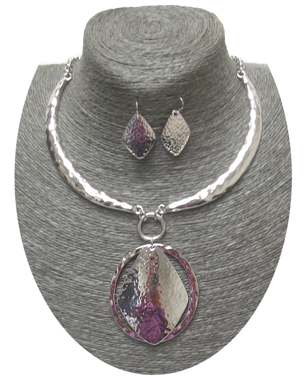 WHOLESALE HAMMERED METAL DISK DROP CHOCKER NECKLACE SET 430581