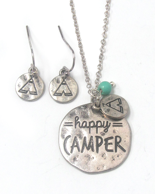 WHOLESALE SOUTHERN COUNTRY STYLE HAMMERED DISK PENDANT NECKLACE SET - HAPPY CAMPER 430710
