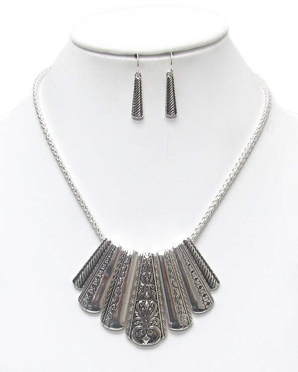 Tribal style metal engrave drop necklace set