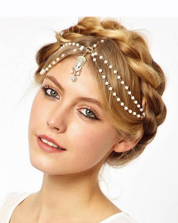 Retro vintage multi bead and layer hair chain