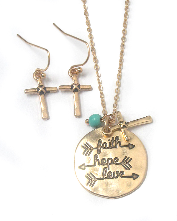 WHOLESALE SOUTHERN COUNTRY STYLE HAMMERED DISK PENDANT NECKLACE SET - FAITH HOPE LOVE 431097