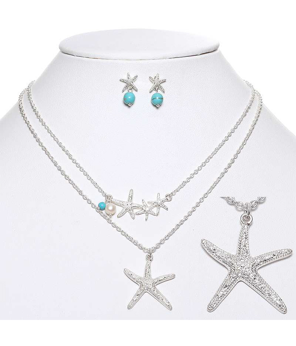 WHOLESALE TEXTURED STARFISH DOUBLE LAYER NECKLACE SET 431456
