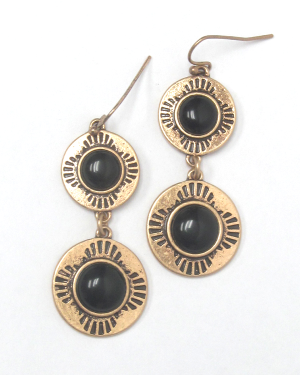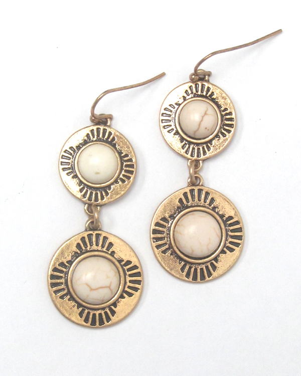 WHOLESALE DOUBLE TURQUOISE METAL DISK DROP EARRING 431707