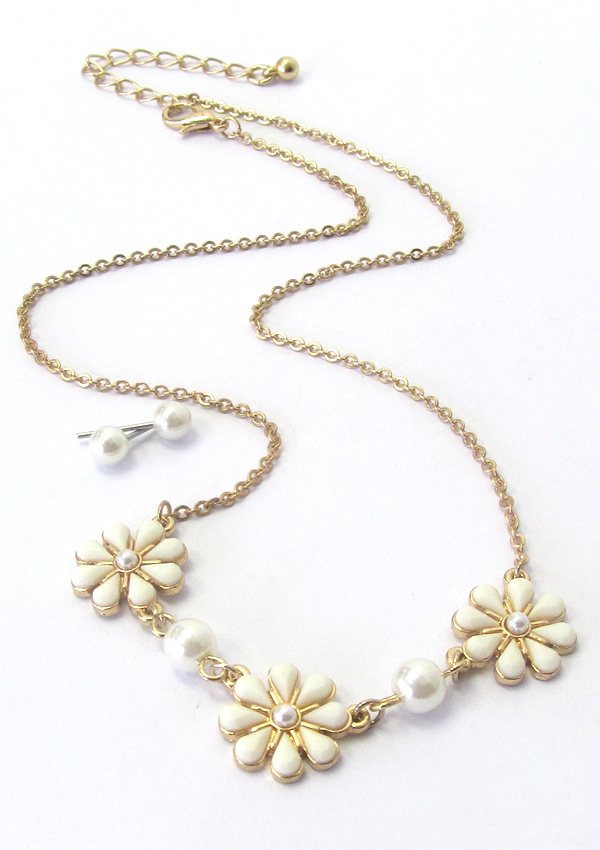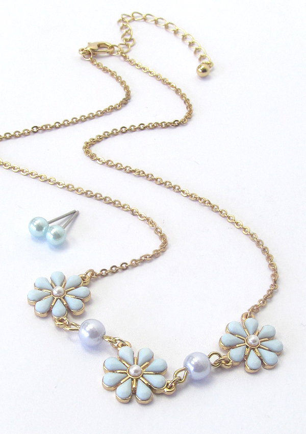 WHOLESALE PEARL AND FLOWER MIX LINK NECKLACE SET 431995
