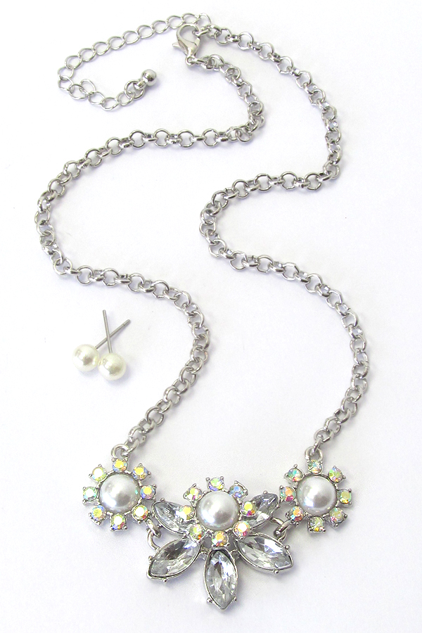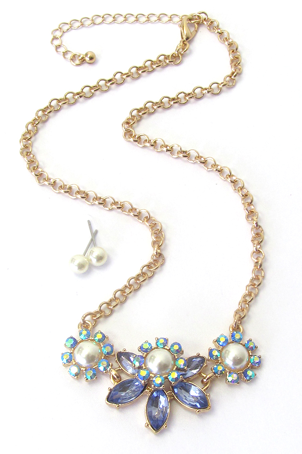 Pearl center flower link necklace set