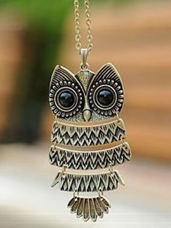 Vintage metal large owl pendant necklace