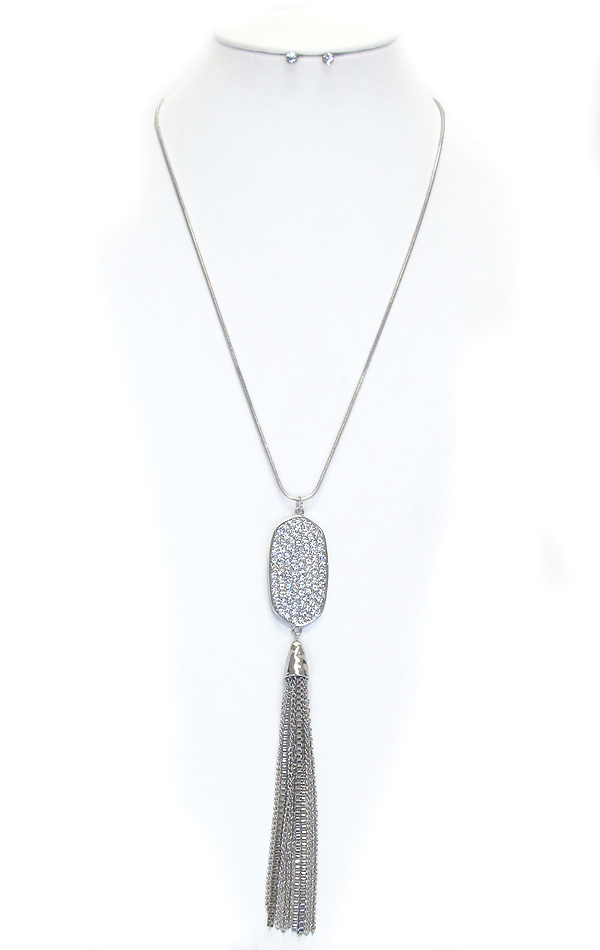 WHOLESALE CRYSTAL PLATE AND FINE CHAIN TASSEL DROP LONG NECKLACE SET 432324