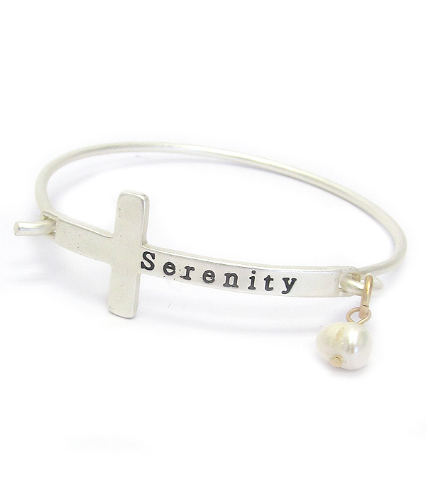 WHOLESALE FRESHWATR PEARL CHARM RELIGIOUS INSPIRATION CROSS WIRE BANGLE BRACELET - SERENITY 432338
