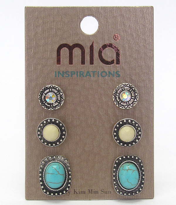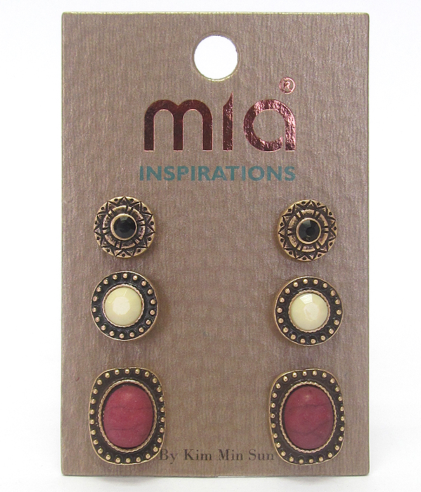 WHOLESALE MIXED STONE 3 PAIR EARRING SET 432647