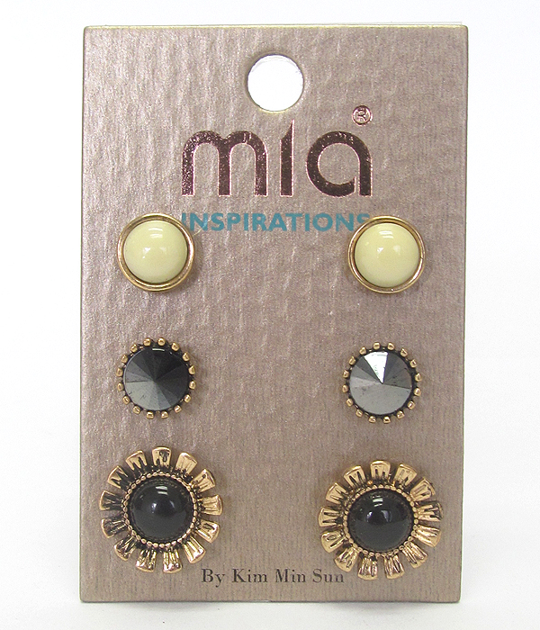 WHOLESALE MIXED STONE 3 PAIR EARRING SET 432770