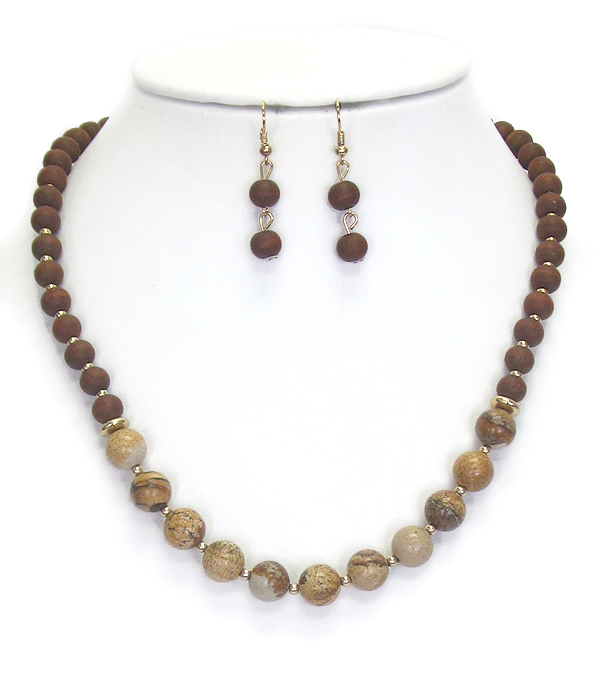 WHOLESALE MULTI STONE AND WOOD BALL NECKLACE SET 432862
