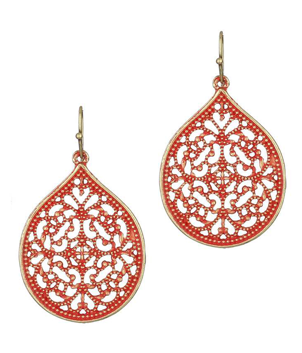 WHOLESALE METAL FILIGREE TEARDROP EARRING 433014