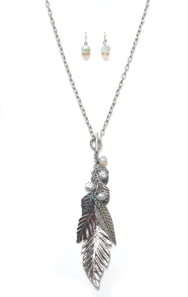 WHOLESALE MULTI METAL FEATHER TOGGLE NECKLACE SET 433027