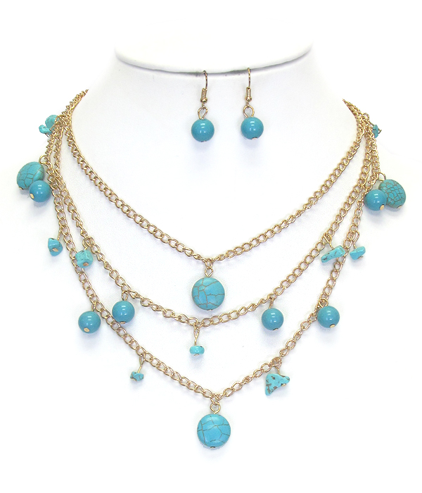 WHOLESALE TURQUOISE DANGLE 3 LAYER CHAIN NECKLACE SET 433211