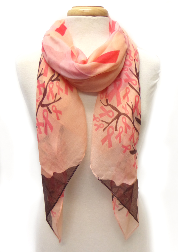 WHOLESALE PINK RIBBON ON TREE PRINT SCARF 433272