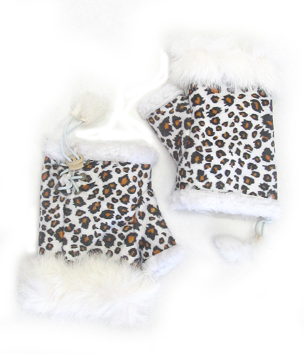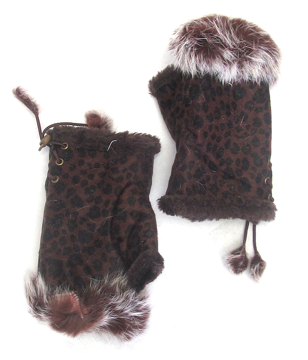 WHOLESALE ANIMAL PRINT FAUX FUR OPEN FINGERTIP MITTEN GLOVES 433326