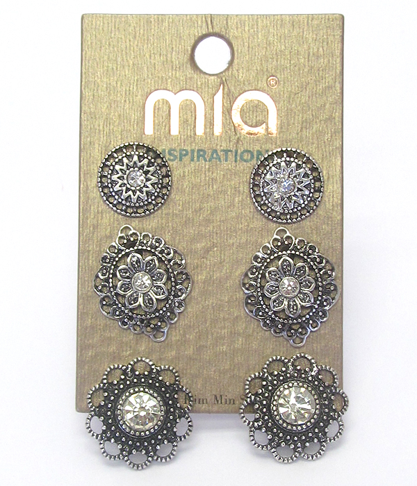 WHOLESALE METAL FILIGREE DISK 3 PAIR EARRING SET 433484