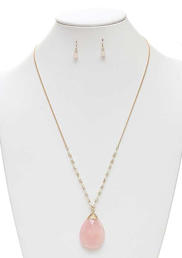 WHOLESALE NATURAL TEARDROP STONE PENDANT LONG NECKLACE SET 433656