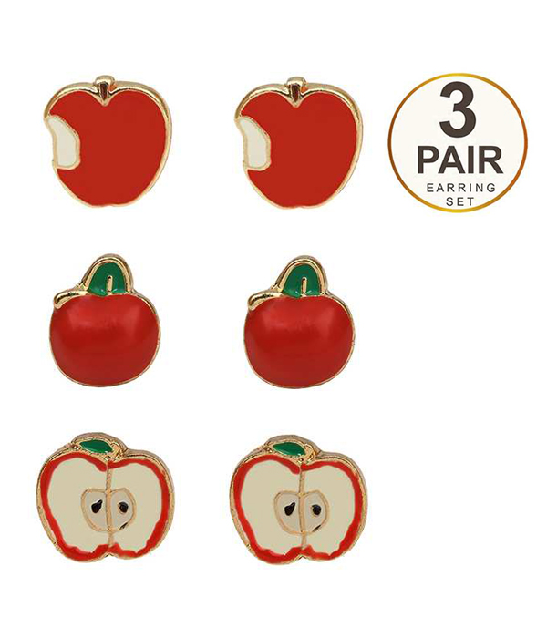 WHOLESALE APPLE 3 PAIR EARRING SET 434039
