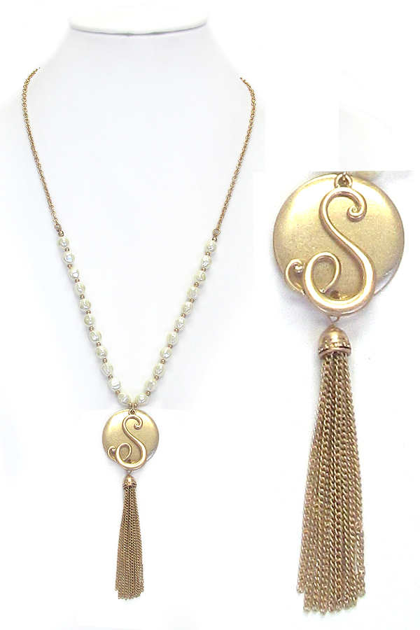 WHOLESALE MONOGRAM AND TASSEL DROP LONG PEARL NECKLACE - S 434387