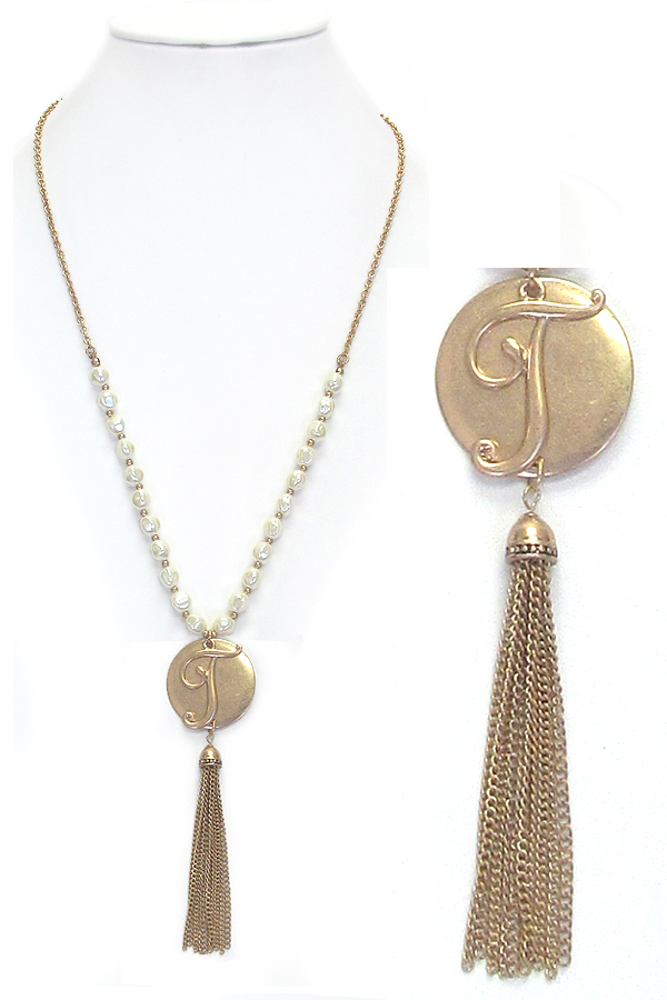 WHOLESALE MONOGRAM AND TASSEL DROP LONG PEARL NECKLACE - T 434388