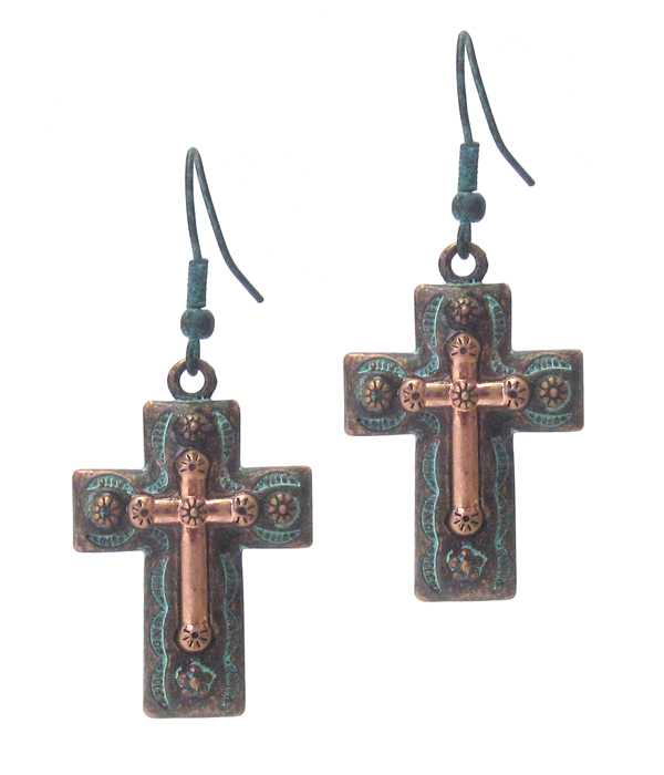 WHOLESALE TEXTURED NAVAJO CROSS EARRING -WESTERN 434473