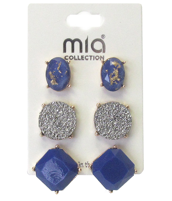 WHOLESALE DRUZY AND FACET ACRYLIC STONE MIX 3 PAIR EARRING SET 434670