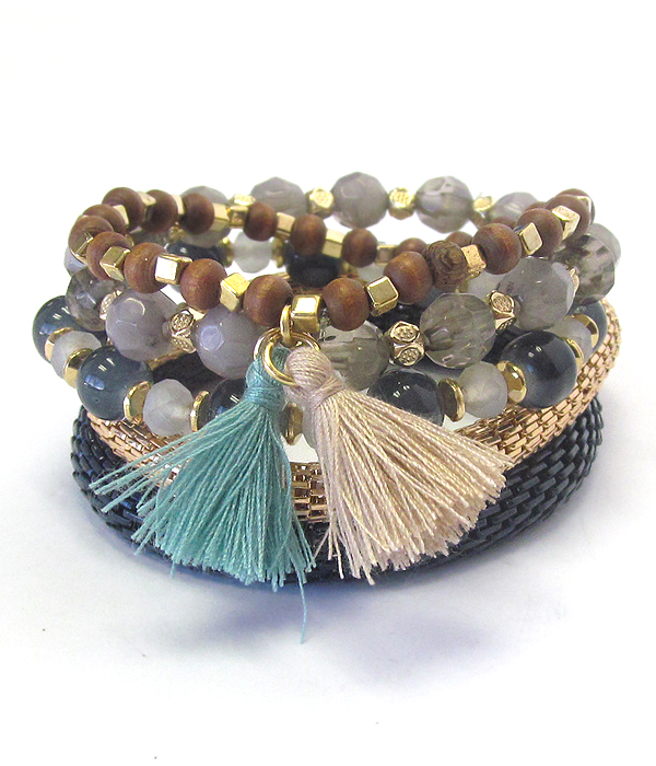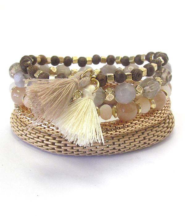 WHOLESALE MULTI METAL AND MIXED BEAD MIX 5 STRETCH BRACELET SET 435183