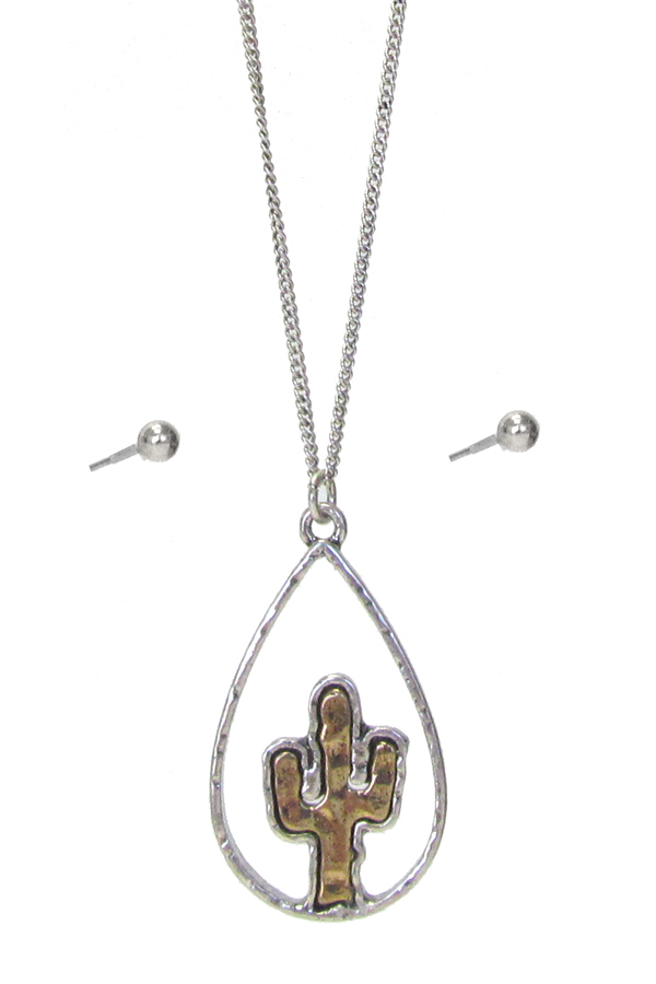 WHOLESALE CACTUS TEARDROP PENDANT NECKLACE SET 447145