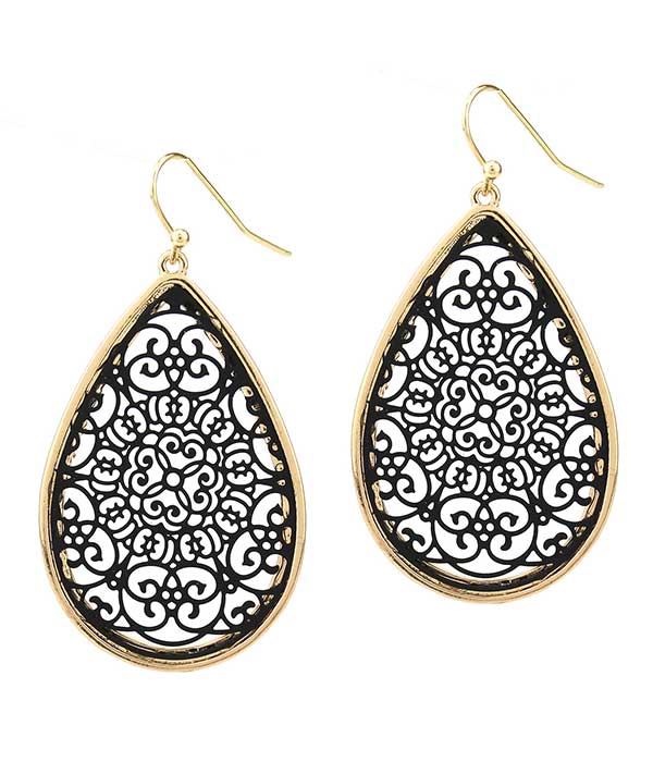 WHOLESALE METAL FILIGREE TEARDROP EARRING 455700