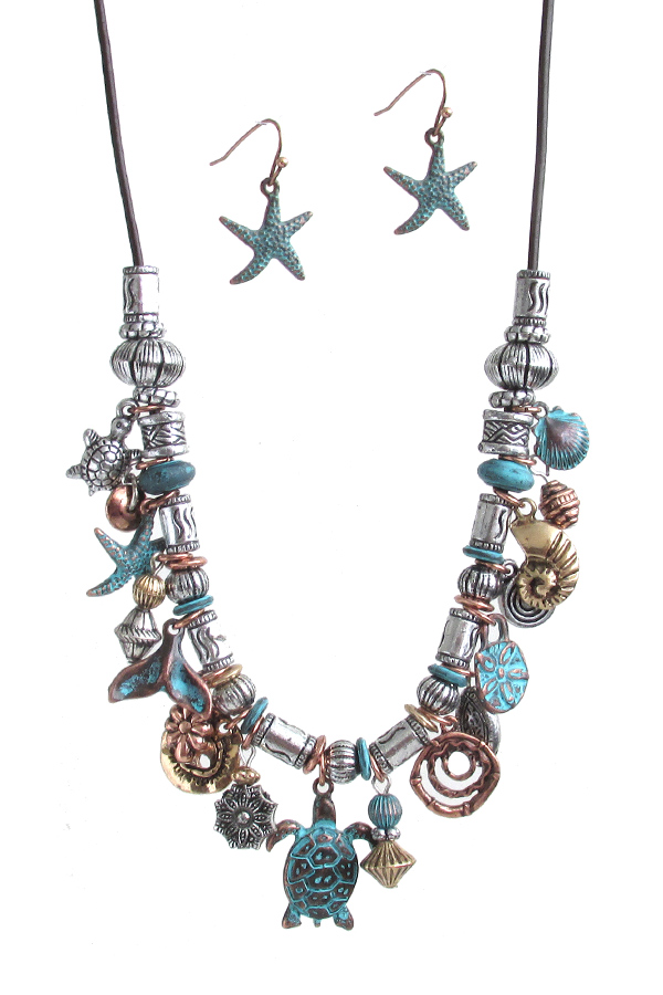 WHOLESALE WESTERN THEME MULTI CHARM DANGLE NECKLACE SET - CROSS 459139