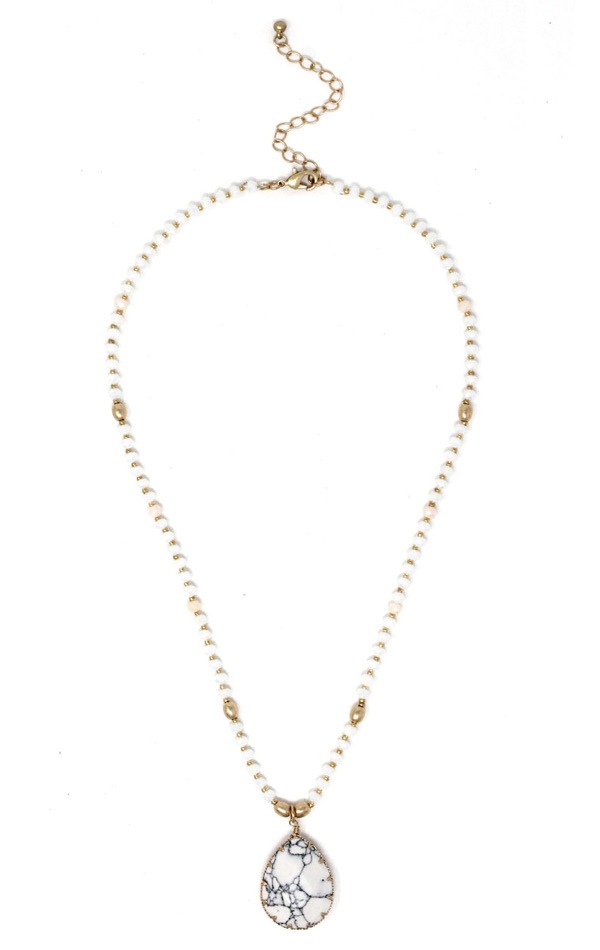 WHOLESALE SEMI PRECIOUS STONE PENDANT TRIPLE LAYER NECKLACE 461109