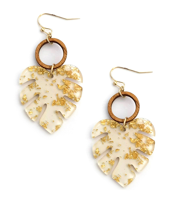 WHOLESALE GOLD FLAKE ACETATE MONSTERA LEAF EARRING 463015