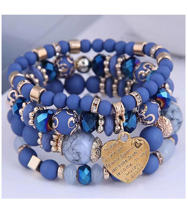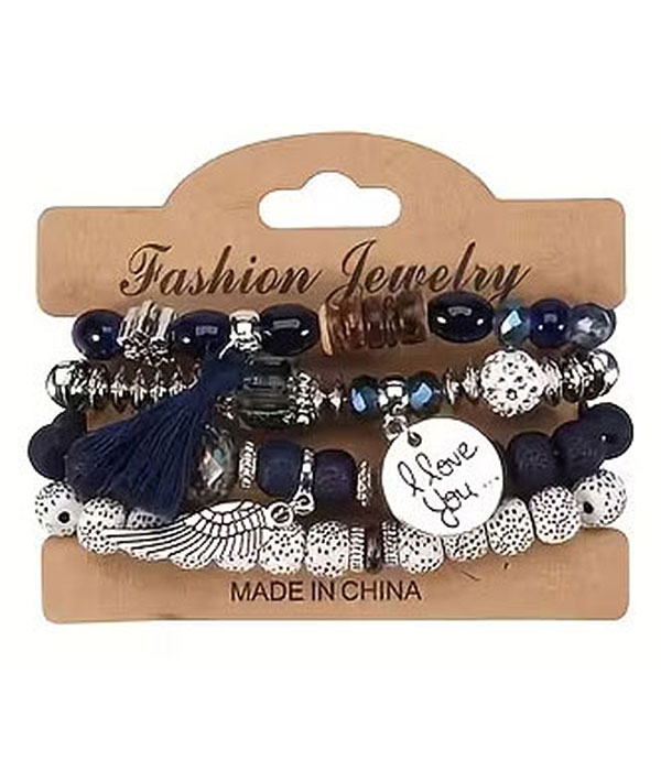 WHOLESALE MULTI MIX BEAD STACKABLE 4 STRETCH BRACELET SET - ANCHOR BUTTERFLY ELEPHANT 470505