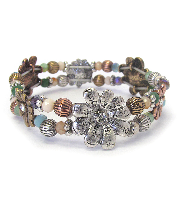 WHOLESALE VINTAGE FLOWER AND BEAD MIX STRETCH BRACELET 479414