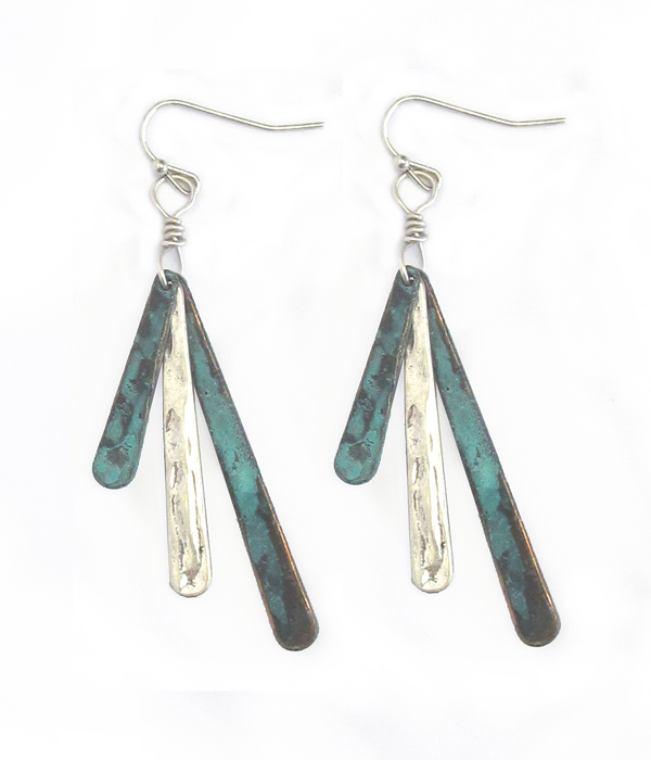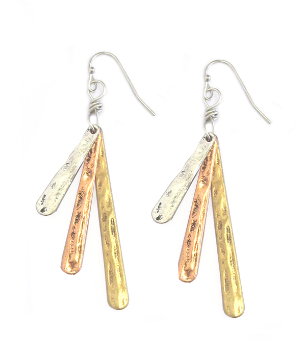 WHOLESALE HAMMERED TRIPLE METAL BAR EARRING 479432