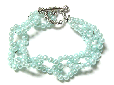 WHOLESALE DOUBLE LINE PEARL BEADS LINK TOGGLE BRACELET 69389