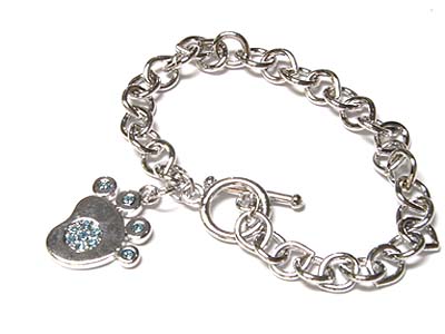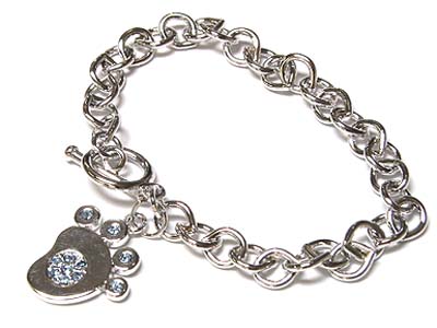 Crystal foot print dangle toggle bracelet