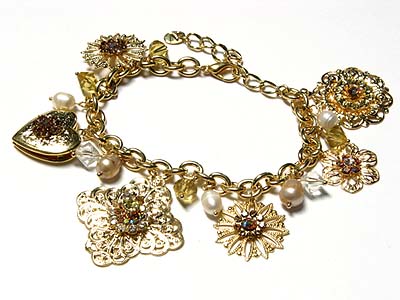 WHOLESALE SHINNY METAL FILLEGREE CHARM WITH CRYSTAL ACCENT CHAIN BRACELET 72785