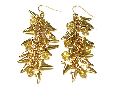 Tooth shape metal and beads cluster drop earring